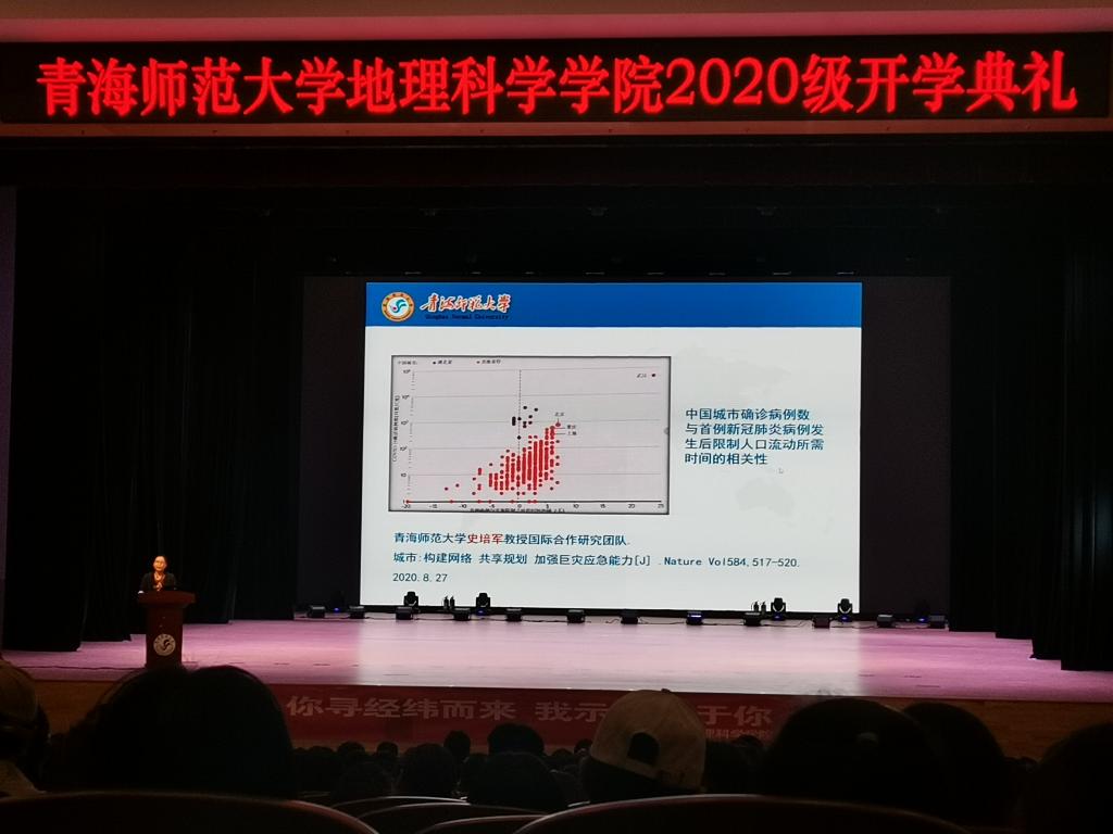 2019-2020学年文明宿舍、优秀就创团队、本科生专业技能大赛”的获奖团体及个人,为新生树立起良好的学习标杆。最后,院长葛岳静教授以“从走近地理学到走进地理学”为题开讲“地理学第一课”,她向同学们讲述了什么是地理学,如何真正走进地理学,并通过前沿的科学研究为同学们指明了未来学习和研究的方向,全院师生受益匪浅。